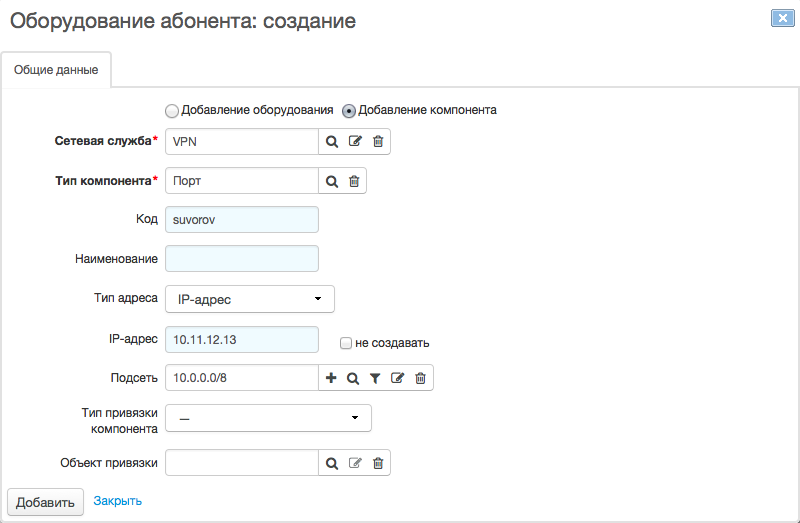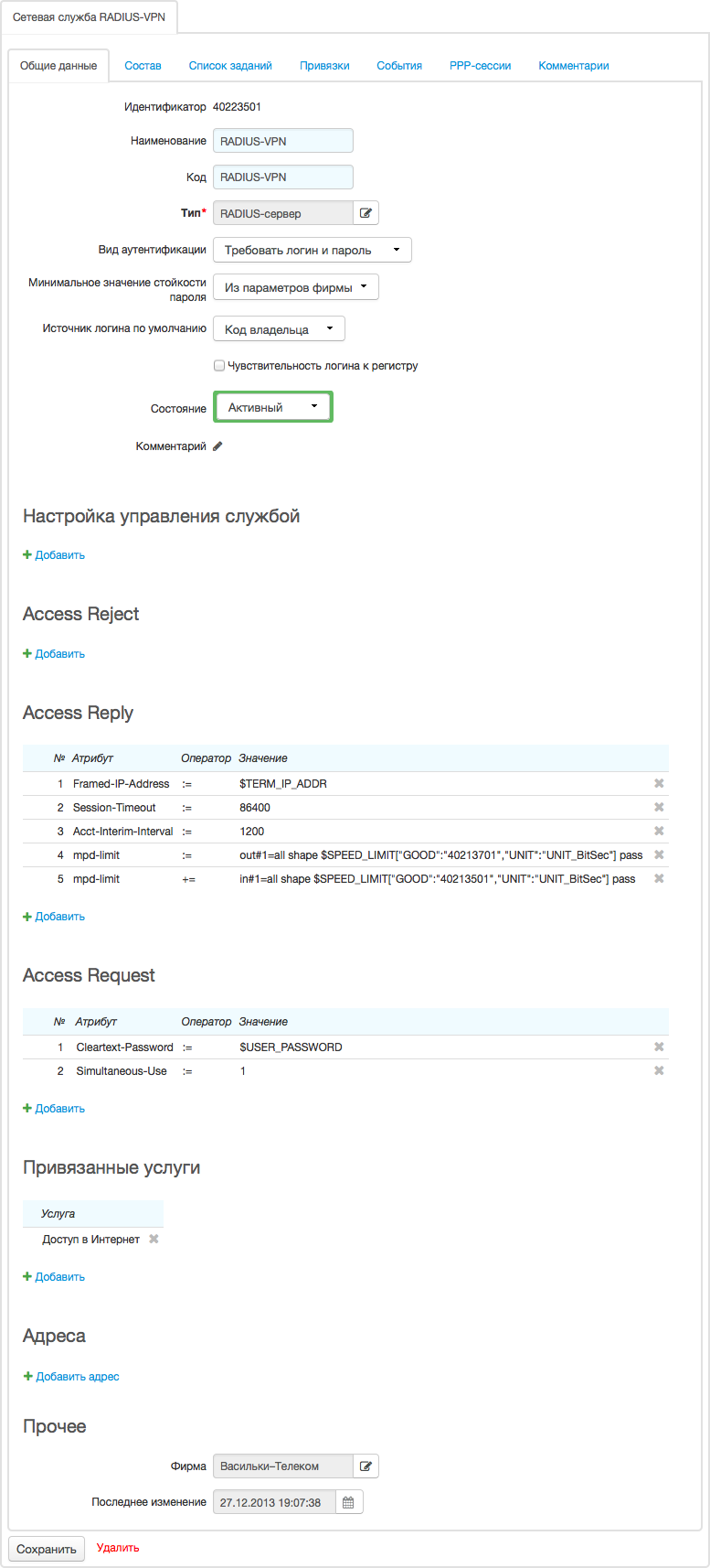 Если служба RADIUS-VPN ещё не используется в Гидре, можно оставить её. В противном случае, замените код по умолчанию RADIUS-VPN на, например, RADIUS-MPD.